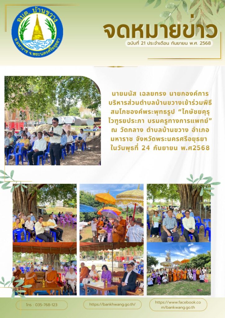 นายมนัส เฉลยทรง นายกองค์การบริหารส่วนตำบลบ้านขวาง เข้าร่วมพิธีสมโภชองค์พระพุทธรูป “ไภษัชยคุรุไวฑูรยประภา บรมครูทางการแพทย์” ณ วัดกลาง ตำบลบ้านขวาง อำเภอมหาราช จังหวัดพระนครศรีอยุธยา ในวันพุธที่ 24 กันยายน พ.ศ2568 Post published:26 กันยายน 2025 Post category:ข่าวประชาสัมพันธ์