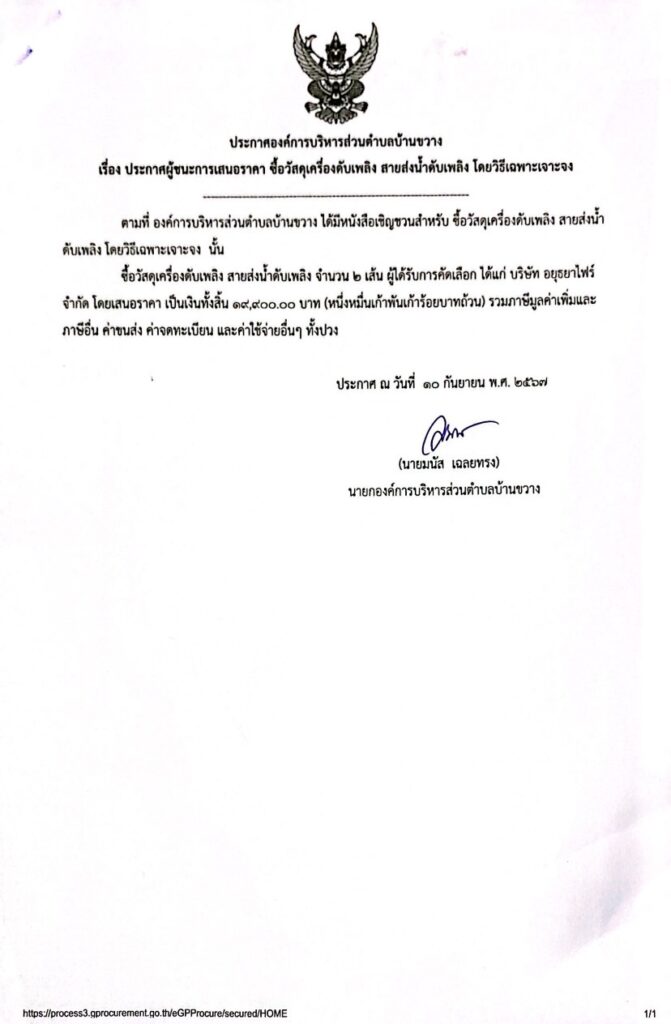 ประกาศองค์การบริหารส่วนตำบลบ้านขวาง เรื่อง ประกาศผู้ชนะการเสนอราคา ซื้อวัสดุเครื่องดับเพลิง สายส่งน้ำดับเพลิง โดยวิธีเฉพาะเจาะจง Post published:10 กันยายน 2024 Post category:ข่าวจัดซื้อจัดจ้าง