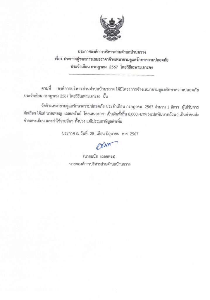ประกาศองค์การบริหารส่วนตำบลบ้านขวาง เรื่อง ประกาศผู้ชนะการเสนอราคาจ้างเหมายามดูแลรักษาความปลอดภัย ประจำเดือน สิงหาคม 2567 โดยวิธีเฉพาะเจาะจง Post published:28 มิถุนายน 2024 Post category:ข่าวจัดซื้อจัดจ้าง