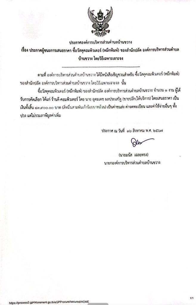ประกาศองค์การบริหารส่วนตำบลบ้านขวาง เรื่อง ประกาศผู้ชนะการเสนอราคา ซื้อวัสดุคอมพิวเตอร์ (หมึกพิมพ์) ของสำนักปลัด องค์การบริหารส่วนตำบลบ้านขวาง โดยวิธีเฉพาะเจาะจง Post published:16 สิงหาคม 2024 Post category:ข่าวจัดซื้อจัดจ้าง