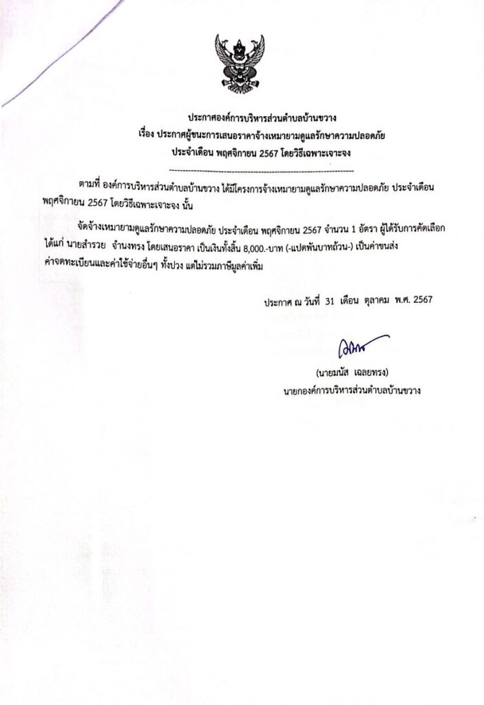 ประกาศองค์การบริหารส่วนตำบลบ้านขวาง เรื่อง ประกาศผู้ชนะการเสนอราคาจ้างเหมายามดูแลรักษาความปลอดภัย ประจำเดือน พฤศจิกายน 2567 โดยวิธีเฉพาะเจาะจง Post published:31 ตุลาคม 2024 Post category:ข่าวจัดซื้อจัดจ้าง