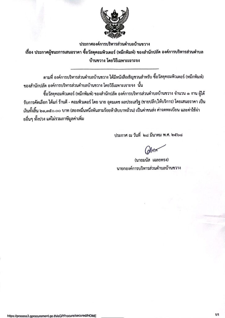 ประกาศองค์การบริหารส่วนตำบลบ้านขวาง เรื่อง ประกาศผู้ชนะการเสนอราคา ซื้อวัสดุคอมพิวเตอร์ (หมึกพิมพ์) ของสำนักปลัด องค์การบริหารส่วนตำบลบ้านขวาง โดยวิธีเฉพาะเจาะจง Post published:28 มีนาคม 2025 Post category:ข่าวจัดซื้อจัดจ้าง