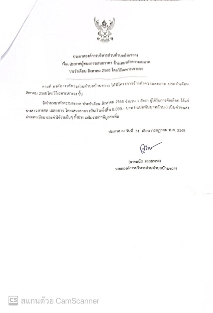 ประกาศองค์การบริหารส่วนตำบลบ้านขวาง เรื่องประกาศผู้ชนะการเสนอราคา จ้างเหมาทำความสะอาด ประจำเดือน สิงหาคม 2568 โดยวิธีเฉพาะเจาะจง Post published:31 กรกฎาคม 2025 Post category:ข่าวจัดซื้อจัดจ้าง