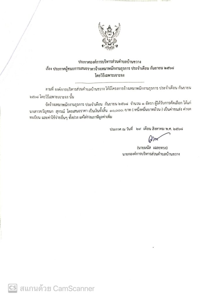 ประกาศองค์การบริหารส่วนตำบลบ้านขวาง เรื่อง ประกาศผู้ชนะการเสนอราคาจ้างเหมาพนักงานธุรการ ประจำเดือน กันยายน 2568 โดยวิธีเฉพาะเจาะจง Post published:29 สิงหาคม 2025 Post category:ข่าวจัดซื้อจัดจ้าง