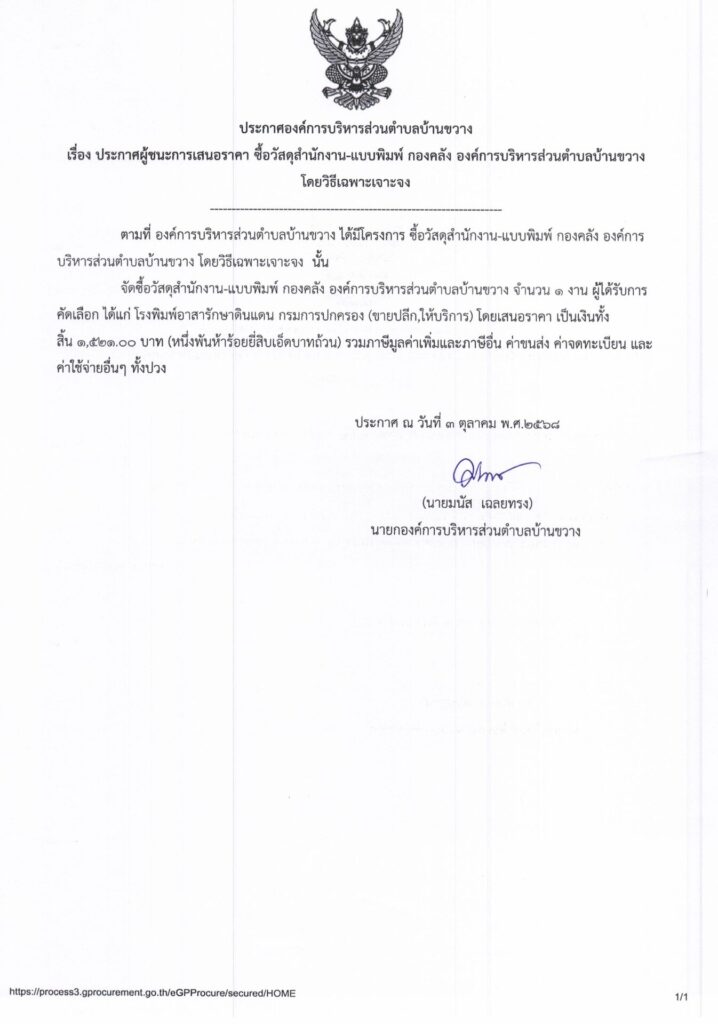 ประกาศองค์การบริหารส่วนตำบลบ้านขวาง เรื่อง ประกาศผู้ชนะการเสนอราคา ซื้อวัสดุสำนักงาน-แบบพิมพ์ กองคลัง องค์การบริหารส่วนตำบลบ้านขวาง โดยวิธีเฉพาะเจาะจง Post published:3 ตุลาคม 2025 Post category:ข่าวจัดซื้อจัดจ้าง