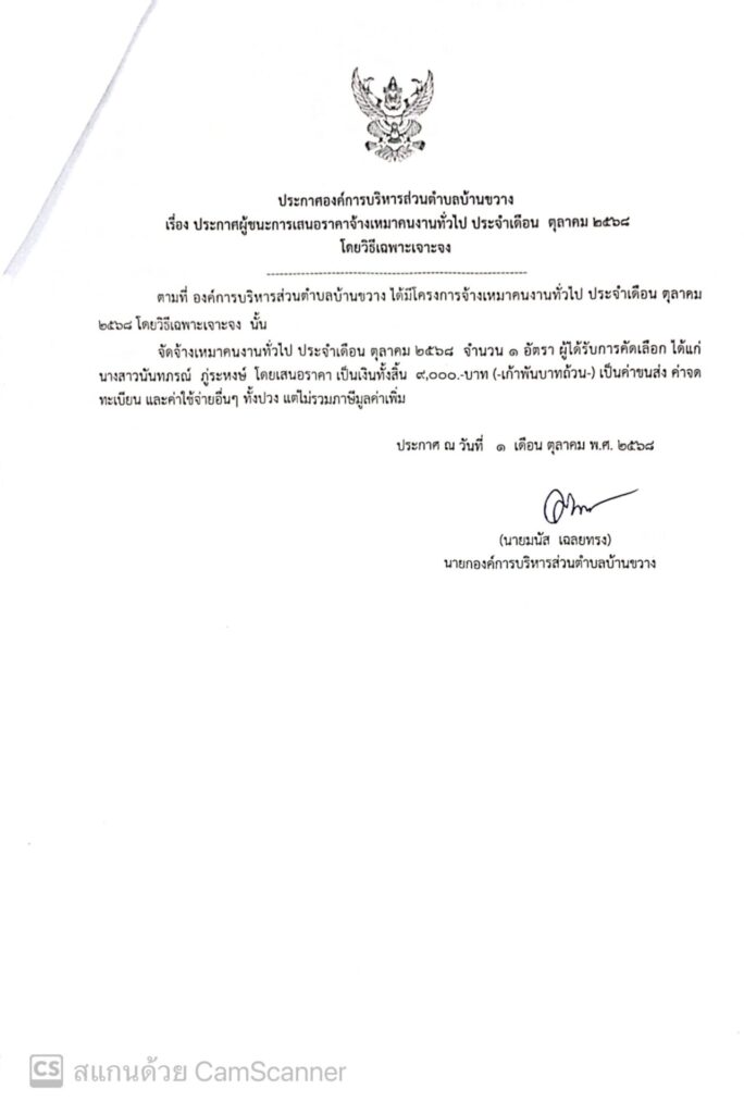 ประกาศองค์การบริหารส่วนตำบลบ้านขวางเรื่อง ประกาศผู้ชนะการเสนอราคาจ้างเหมาคนงานทั่วไป ประจำเดือน ตุลาคม ๒๕๖๘ โดยวิธีเฉพาะเจาะจง Post published:1 ตุลาคม 2025 Post category:ข่าวจัดซื้อจัดจ้าง