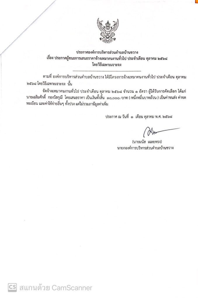 ประกาศองค์การบริหารส่วนตำบลบ้านขวางเรื่อง ประกาศผู้ชนะการเสนอราคาจ้างเหมาคนงานทั่วไป ประจำเดือน ตุลาคม ๒๕๖๘ โดยวิธีเฉพาะเจาะจง Post published:1 ตุลาคม 2025 Post category:ข่าวจัดซื้อจัดจ้าง