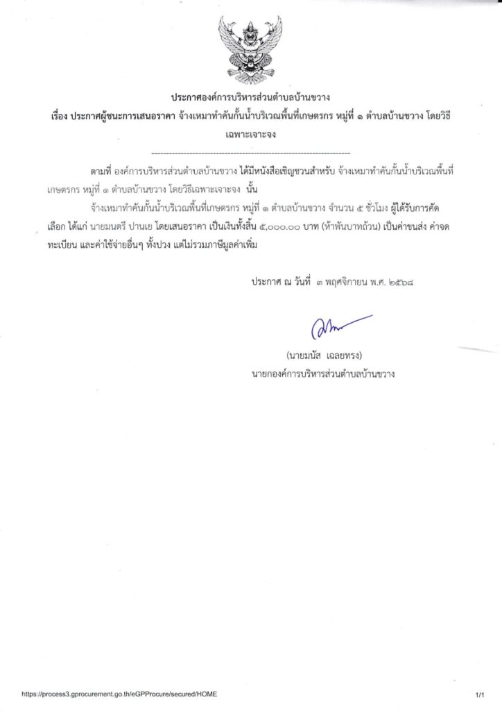 ประกาศองค์การบริหารส่วนตำบลบ้านขวาง เรื่อง ประกาศผู้ชนะการเสนอราคา จ้างเหมาทำคันกั้นน้ำบริเวณพื้นที่เกษตรกร หมู่ที่ ๑ ตำบลบ้านขวาง โดยวิธีเฉพาะเจาะจง Post published:3 พฤศจิกายน 2025 Post category:ข่าวจัดซื้อจัดจ้าง