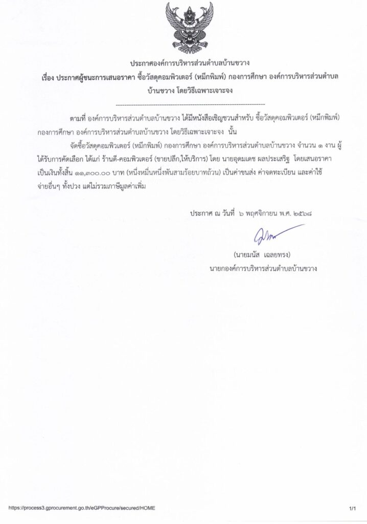 ประกาศองค์การบริหารส่วนตำบลบ้านขวาง เรื่อง ประกาศผู้ชนะการเสนอราคา ซื้อวัสดุคอมพิวเตอร์ (หมึกพิมพ์) กองการศึกษา องคืการบริหารส่วนตำบลบ้านขวาง โดยวิธีเฉพาะเจาะจง Post published:6 พฤศจิกายน 2025 Post category:ข่าวจัดซื้อจัดจ้าง